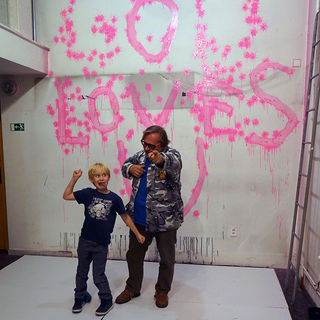 The performance “What do boys believe in?” questions the mechanisms shaping male identity. The artist highlights militarism and, in combination with religion, presents it as a tool for domination and the reinforcement of hierarchy. Dressed in a paramilitary scout-style uniform, he fires a paintball marker, leaving pink traces on the white gallery wall that form the phrase “God Loves You”.